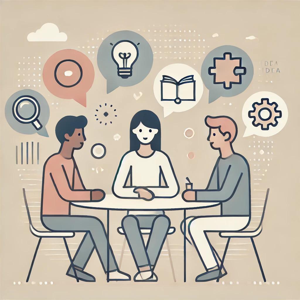 Picture a vibrant scene where students are gathered around a table, animatedly discussing topics. Their conversation is punctuated with lightbulb moments, represented by small icons that float above their heads. This collaborative environment turns revision into a social, interactive event rather than an isolating chore.